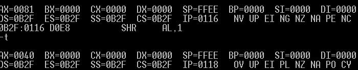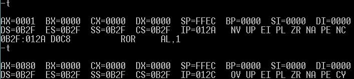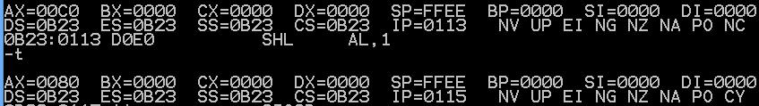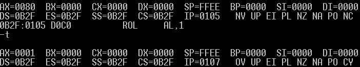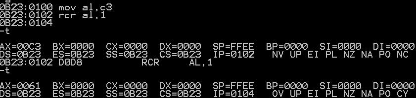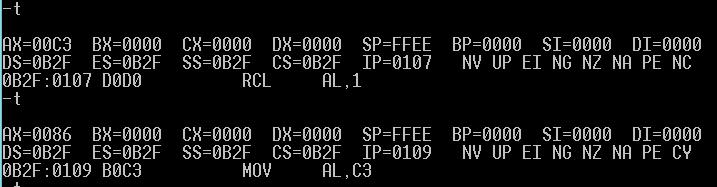 RCL: al:1100 0011 cf:0 ---->al:1000 0110 cf:1