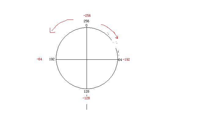 以顺时针为正(1,2,3,4,5,6,7,,,,,,64,,,,128,,,,192,,),逆时针为负(-1,-2。。。。-64。。。。-128。。。),0为起始点开始标注各点的值(图中只标注了几个)。